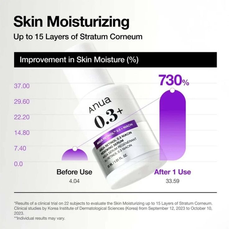 المنتج الموجود في الصورة هو سيروم أنوا نانو ريتينول 0.3% + نياسين مجدد للبشرة (Anua Nano Retinol 0.3% + Niacin Renewing Serum).