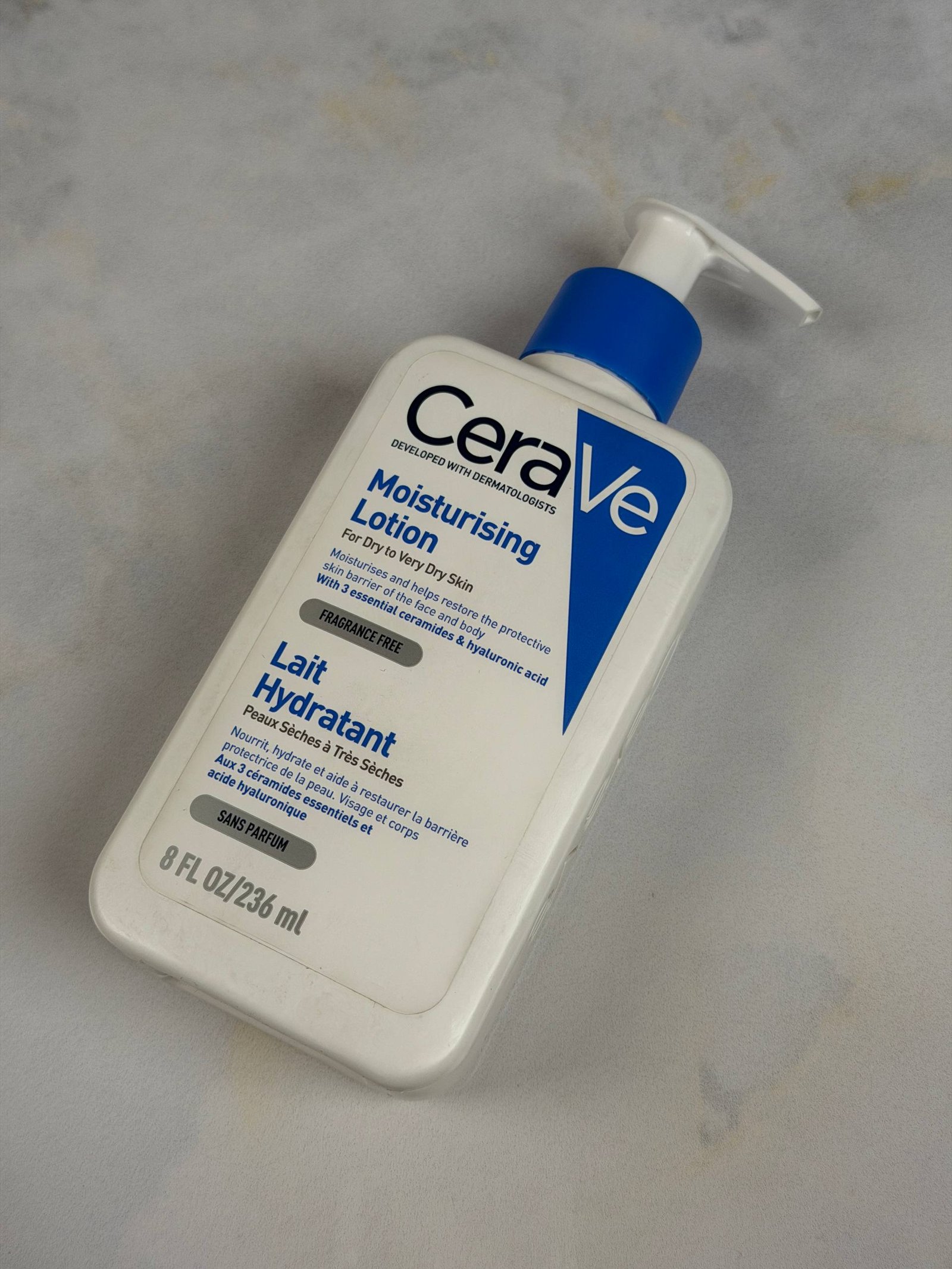 لوشن سيرافي المرطب (CeraVe Moisturising Lotion)، وهو مرطب يومي خفيف الوزن وغير دهني مصمم خصيصاً للبشرة الجافة إلى شديدة الجفاف