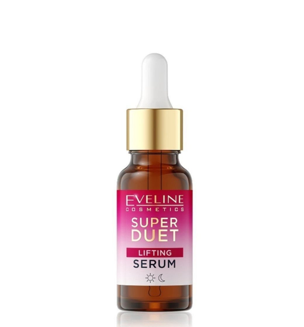 المنتج الموضح في الصورة هو مصل شد البشرة “سوبر دويتو” من إيفلين كوزمتكس (Eveline Cosmetics Super Duet Lifting Serum).