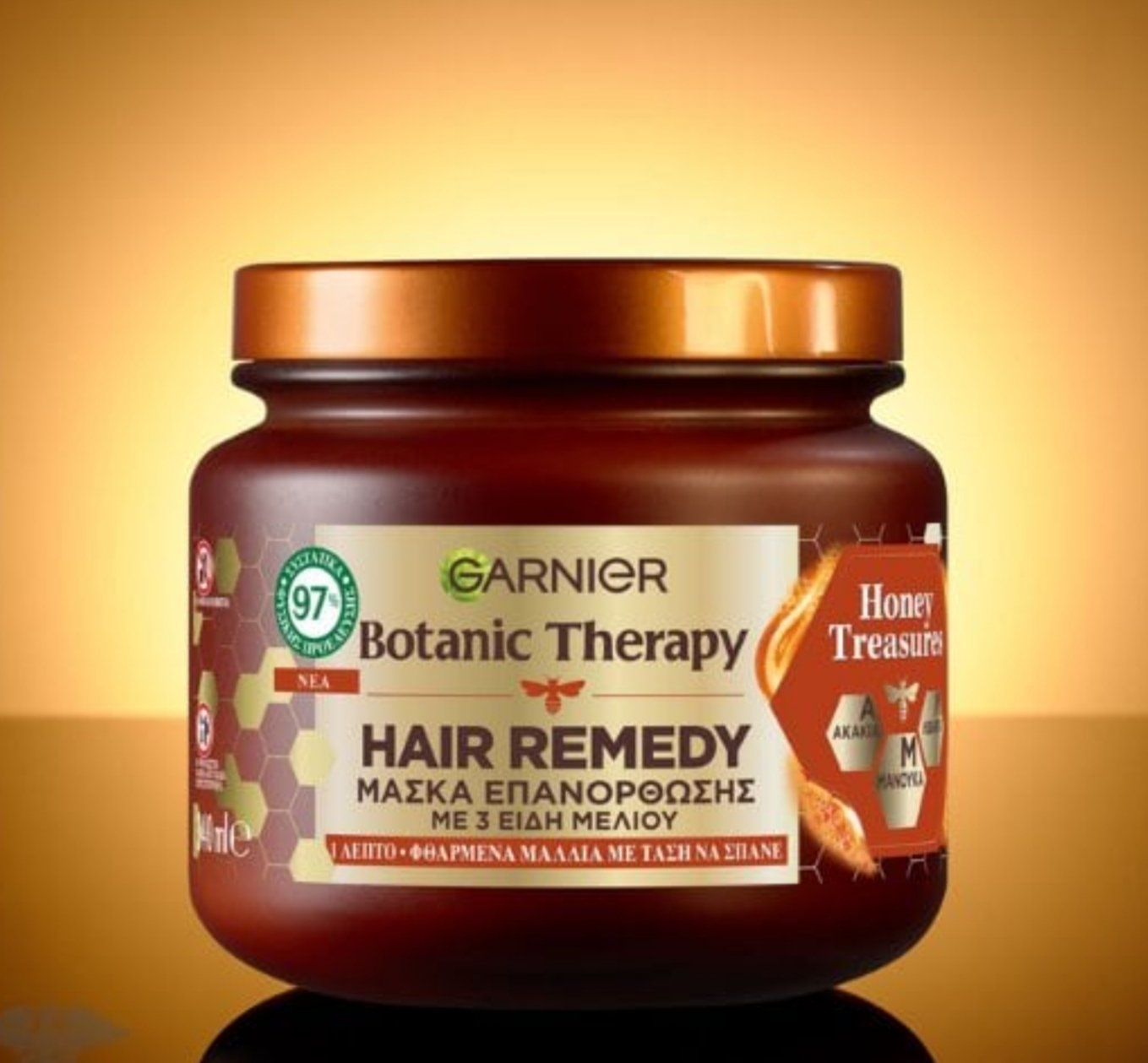 المنتج الموضح في الصورة هو قناع الشعر Garnier Botanic Therapy Honey Treasures Hair Remedy.