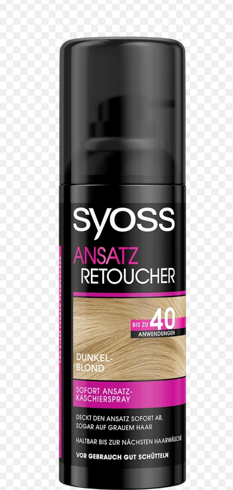 المنتج الموضح في الصورة هو بخاخ خافي جذور الشعر المؤقت Syoss Ansatz Retoucher.
